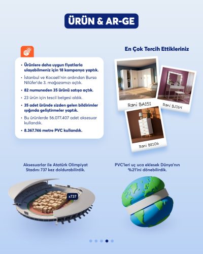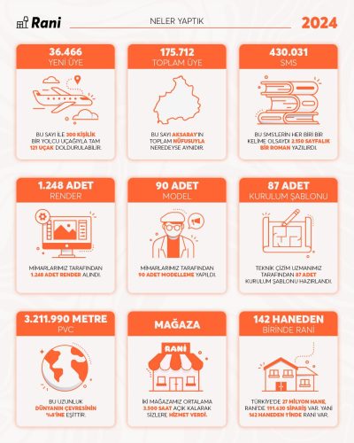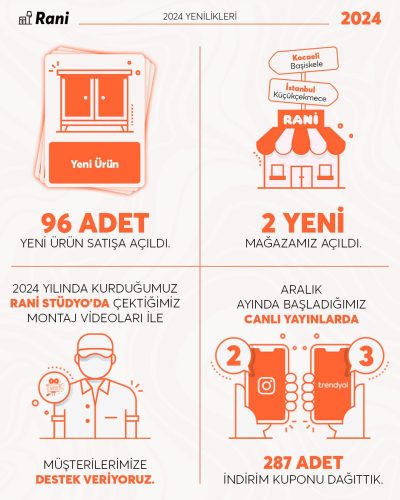 Yıllar içinde attığımız adımları, geliştirdiğimiz hizmetleri ve birlikte yarattığımız etkiyi bu infografiklerde bir araya getirdik. Rani olarak büyüme yolculuğumuzda her yılın öne çıkan başlıklarını burada görebilirsiniz.